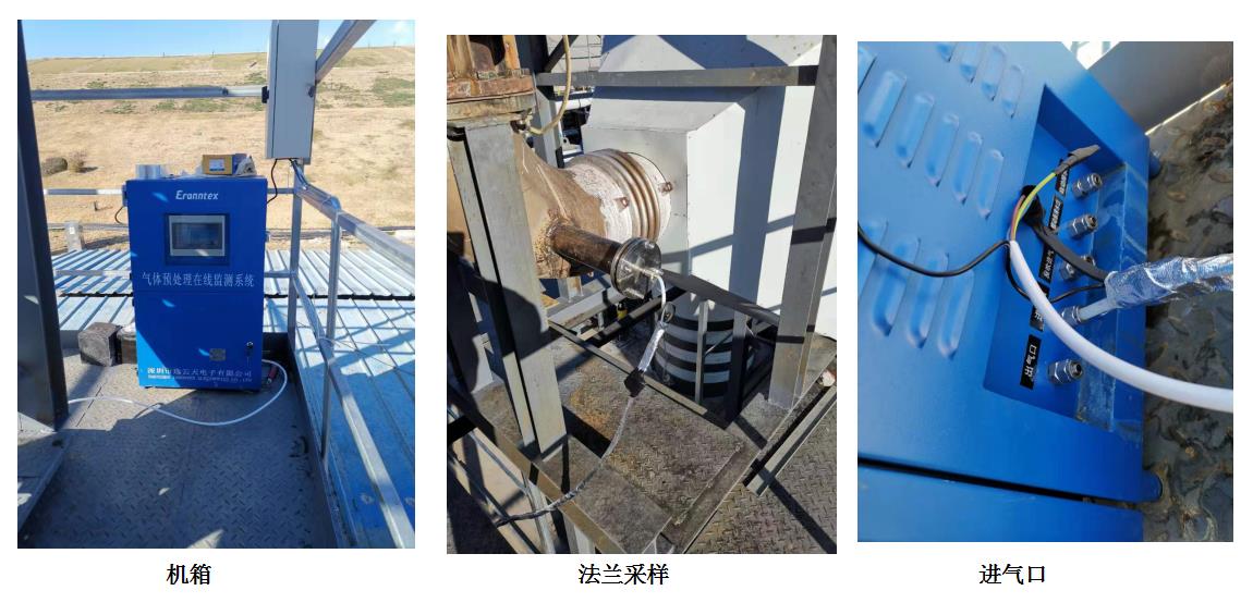 工作流程:氣體監(jiān)測系統(tǒng)由置于廢氣排放管道上的采樣探頭以及分析機(jī)柜組成。
